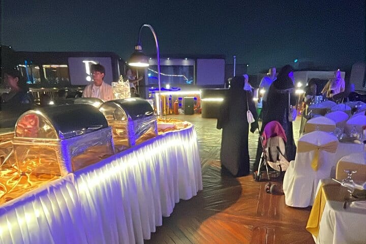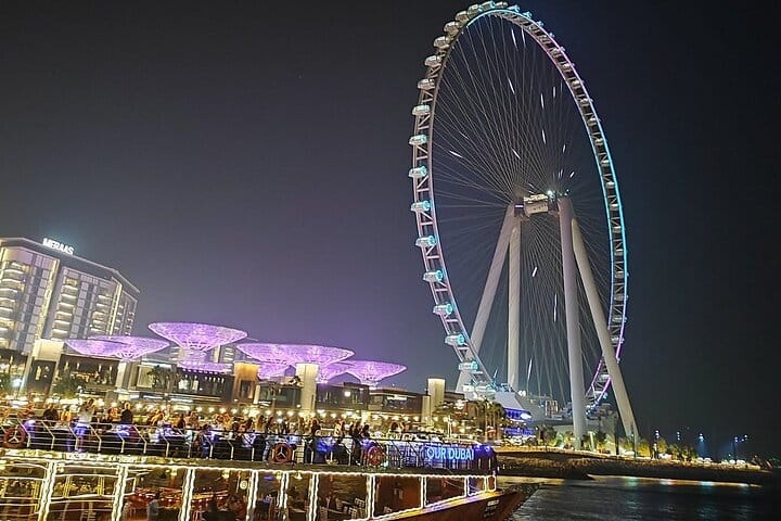 This Dubai Marina cruise combines sightseeing, dining, and entertainment in one seamless experience. Unlike standard boat rides, travelers enjoy a full international buffet, live music, and uninterrupted views of Dubai’s most famous waterfront landmarks—all from a comfortable, air-conditioned vessel. With a scenic route covering Palm Jumeirah, Ain Dubai, and Marina’s skyline, it’s an ideal choice for couples, families, and visitors looking for a relaxed yet memorable evening on the water.